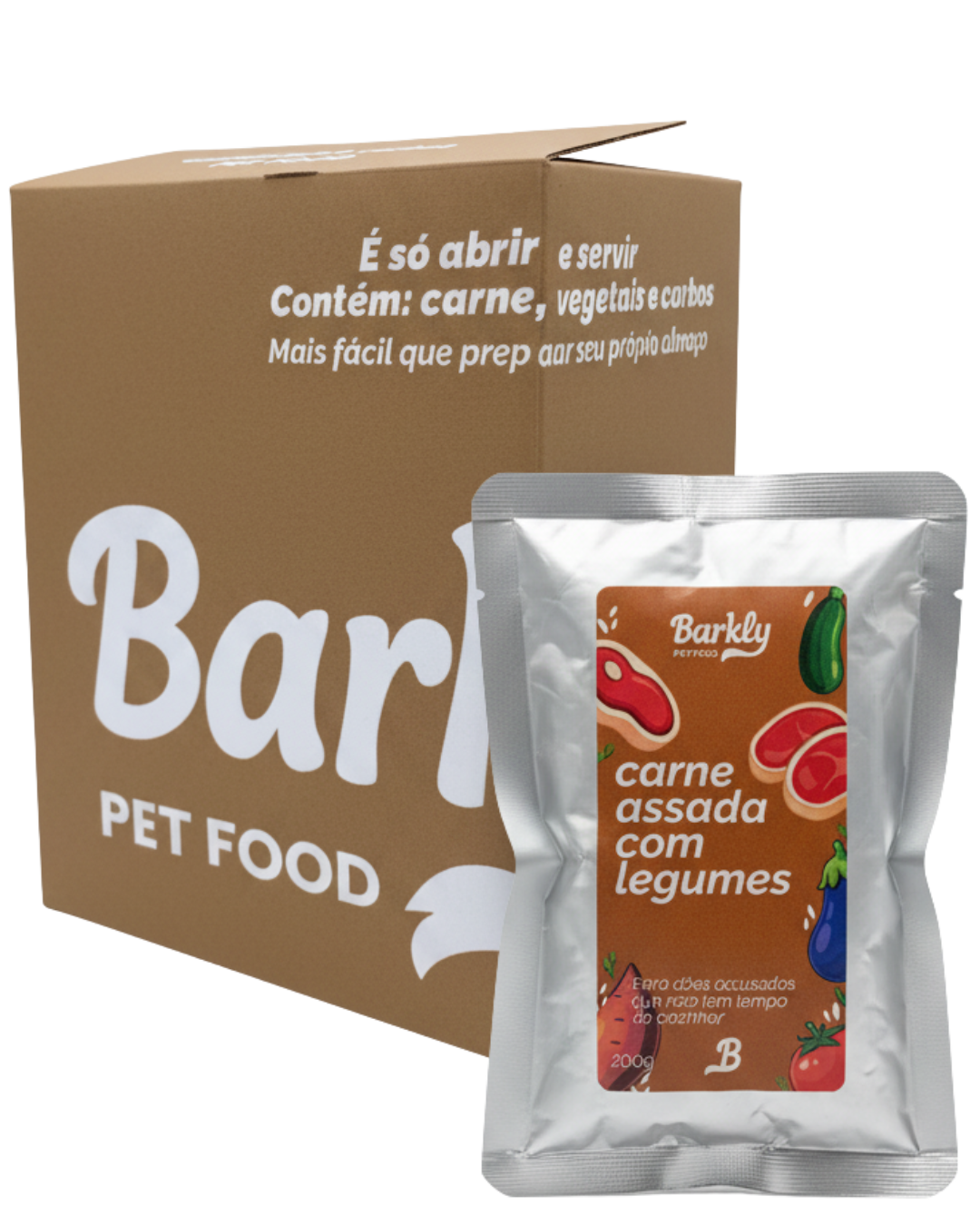 Sabor de casa e nutrição completa! O Barkly Carne Assada com Legumes é uma comida natural para cão feita com carne bovina cozida a vapor, legumes frescos e grãos leves, garantindo uma refeição cheia de energia e vitalidade.